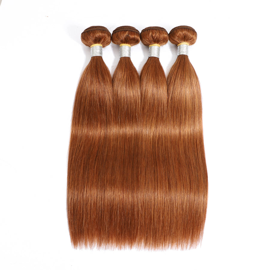 TT Hair Medium Auburn Color Straight Brazilian Hair 4 Bundles Remy Human Hair Extensions